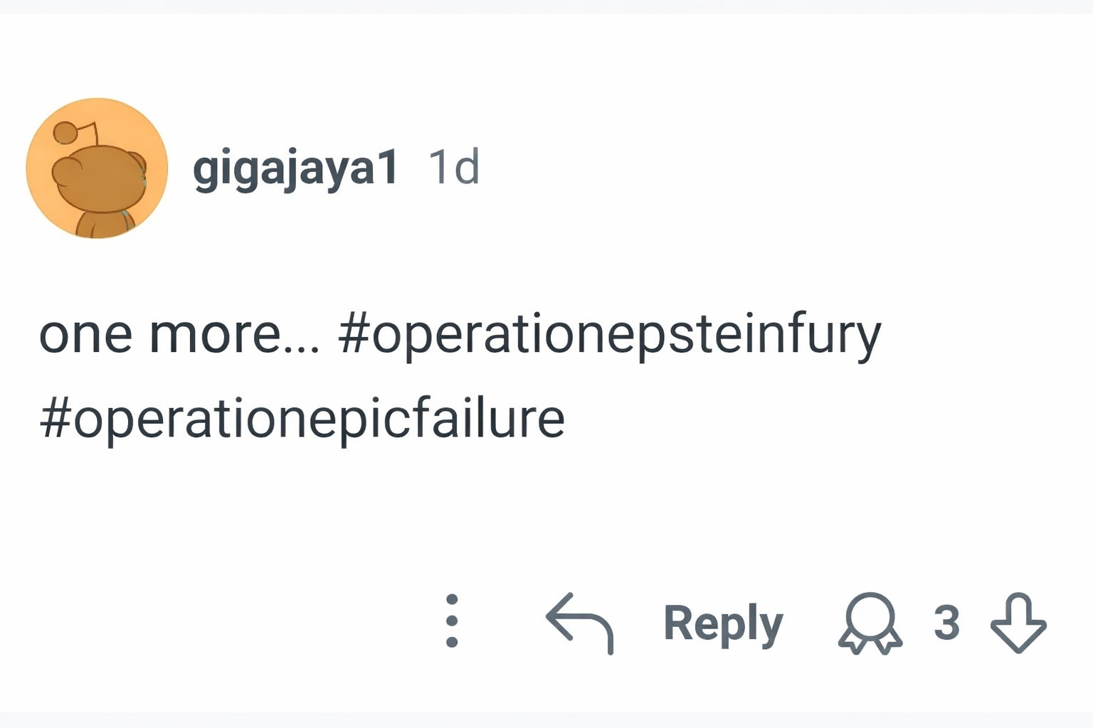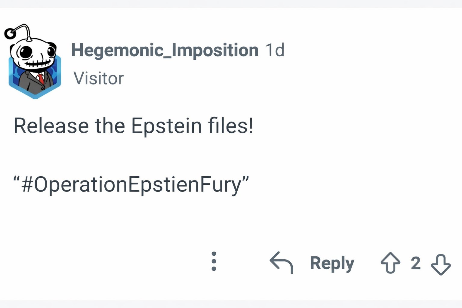 “At this point just call every global event Operation Epstein Files so we can stop pretending.”