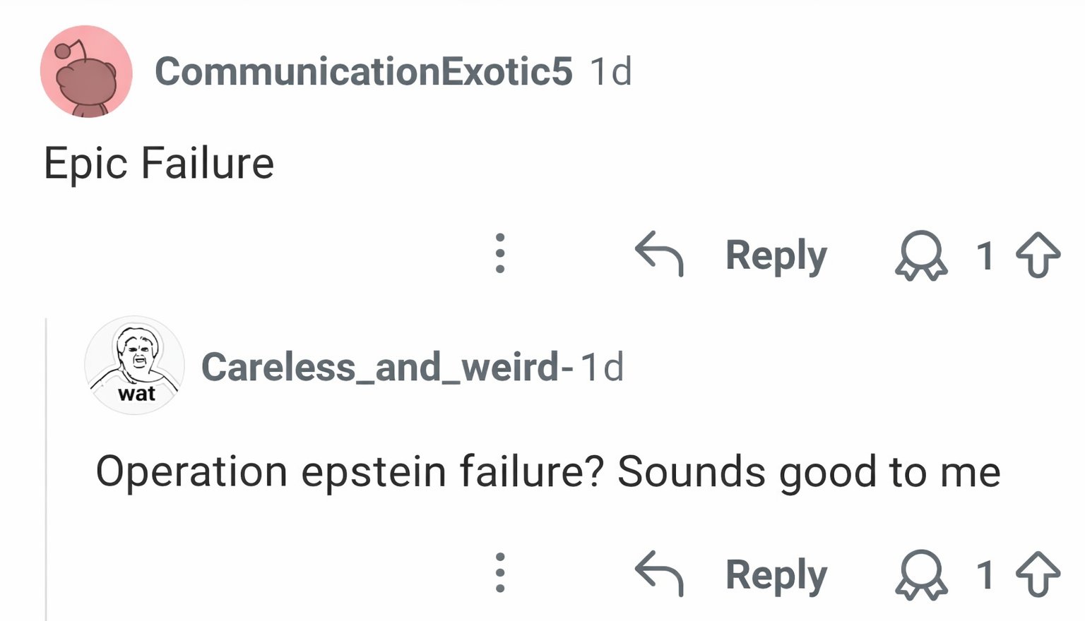 Still, the suggestion has gained surprising traction online. Every time someone posts the actual operation name, the replies fill up with variations of: “You mean Operation Epstein Files?”